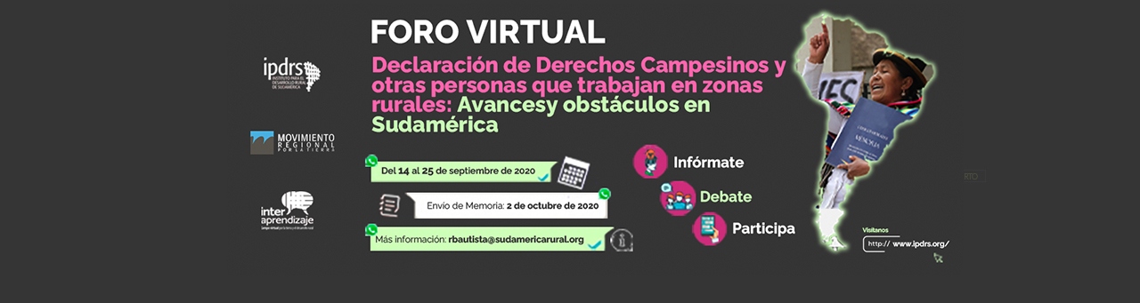 Los foros virtuales son un espacio de actualización de conocimientos y de articulación. Se desarrollan a través de dispositivos como videos, webinars, artículos e intercambios entre profesionales que quieren profundizar e investigar temas de desarrollo rural. A diferencia de un curso virtual su carácter es más flexible; sin embargo, desde la experiencia del Instituto para el Desarrollo Rural de Sudamérica (IPDRS) e Interaprendizaje los foros han logrado generar incidencias importantes porque se construyen de manera colectiva y en diálogo con distintos actores.