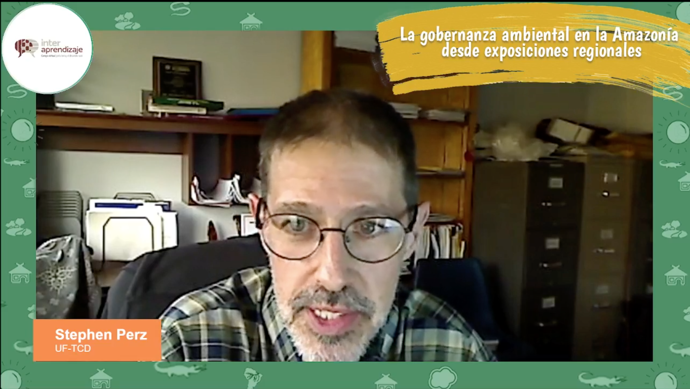 Stephen Perz, sociólogo de la Universidad de Florida, comentó las exposiciones presentadas. Asentó que la gobernanza ambiental, si bien es un concepto occidental, puede reflexionarse, adaptarse o reemplazarse por otras ontologías relacionales que permitan una gestión sostenible y de larga data. Habló de la necesidad de ser más creativos para empujar procesos colaborativos con los gobiernos para hacer gobernanza ambiental, principalmente cuando la economía de un territorio se dinamizada alrededor de actividades ilegales que lo afectan.