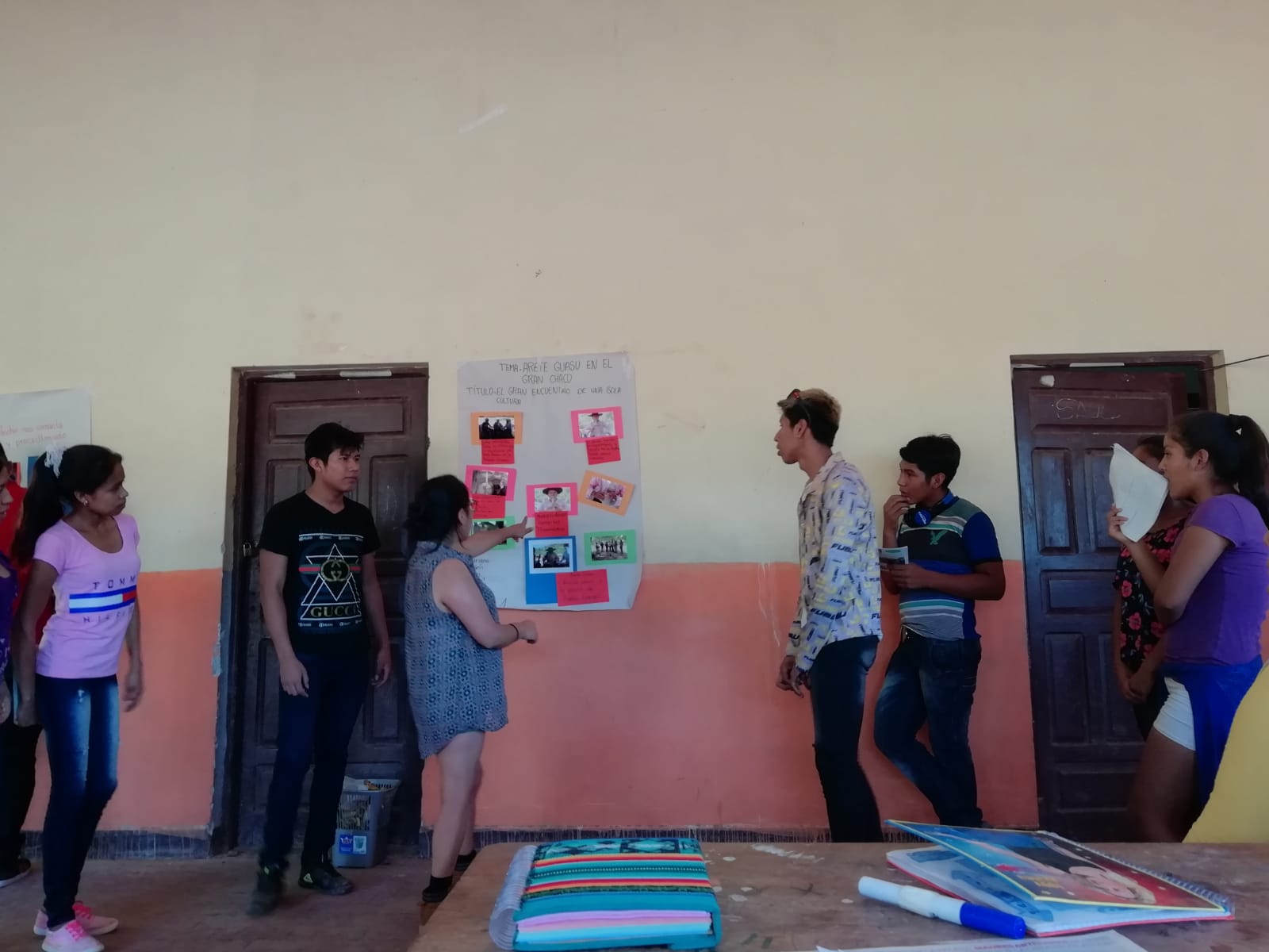El taller, facilitado por Jhaquelin Dávalos, Dario Cusso, Apolinar Chuguay y Rali Jamali, propuso un trabajo por equipos técnicos (fotografía, sonido, guion, producción y arte). Pues, todo reportaje supone una idea, enfoque y un proceso de planificación para su realización. Se trabajaron cuatro reportajes, el primero sobre el textil guaraní con Santa Aguari Ararigua, sobre el arete guasu y la flauta con Don Marcelo Aguari, sobre el proceso de elaboración de la chicha con Sabina Simón y sobre los periodistas guaranís argentinos pertenecientes a CCNAGUA, Consejo Continental de la Nación Guaraní que se encontraban en Itanambikua para acreditar a nuevos periodistas guaraníes, entre ellos Apolinar Chuguay.