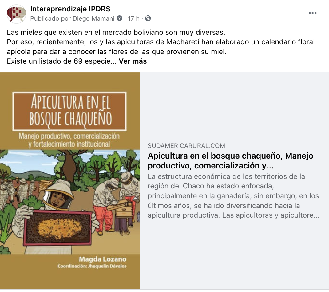 Para Interaprendizaje, la plataforma educativa del IPDRS, el curso virtual “Apicultura en el bosque chaqueño” fue la primera experiencia desarrollada exclusivamente para un grupo de base campesina – indígena y fue la primera experiencia en la que no destinó mucho esfuerzo en el seguimiento académico. Para la AAPIMMACH y las otras asociaciones del curso representó un doble desafío: la actualización en materia apícola y tecnológica.