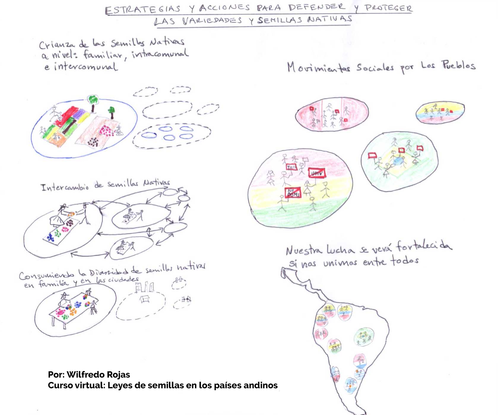 En este artículo el Curso virtual: Leyes de semillas en los países andinos comparte algunos materiales generados por las y los estudiantes del curso. Los mapas con estrategias para frenar el acaparamiento de semillas en la región han sido generados en la unidad 4 y los podcasts, con un análisis sobre las normativas de algunos países han sido trabajados en la unidad 3.