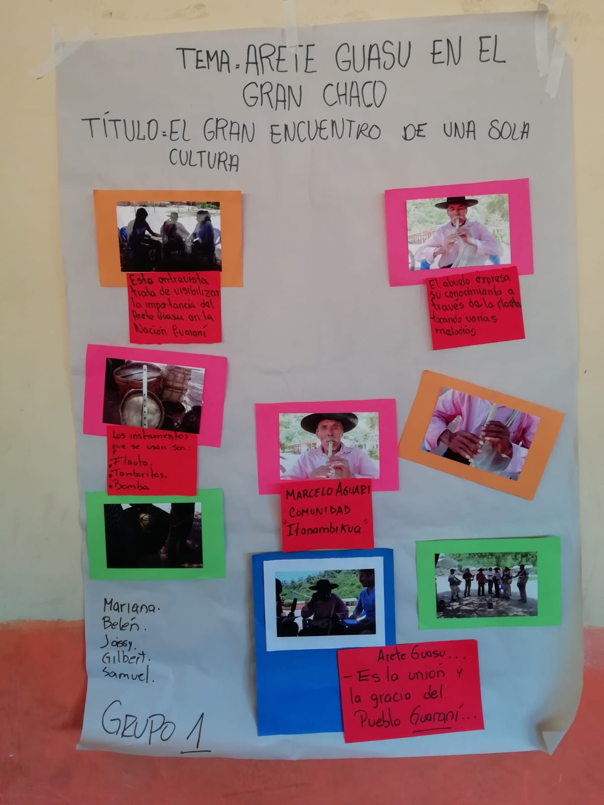 El taller, facilitado por Jhaquelin Dávalos, Dario Cusso, Apolinar Chuguay y Rali Jamali, propuso un trabajo por equipos técnicos (fotografía, sonido, guion, producción y arte). Pues, todo reportaje supone una idea, enfoque y un proceso de planificación para su realización. Se trabajaron cuatro reportajes, el primero sobre el textil guaraní con Santa Aguari Ararigua, sobre el arete guasu y la flauta con Don Marcelo Aguari, sobre el proceso de elaboración de la chicha con Sabina Simón y sobre los periodistas guaranís argentinos pertenecientes a CCNAGUA, Consejo Continental de la Nación Guaraní que se encontraban en Itanambikua para acreditar a nuevos periodistas guaraníes, entre ellos Apolinar Chuguay.